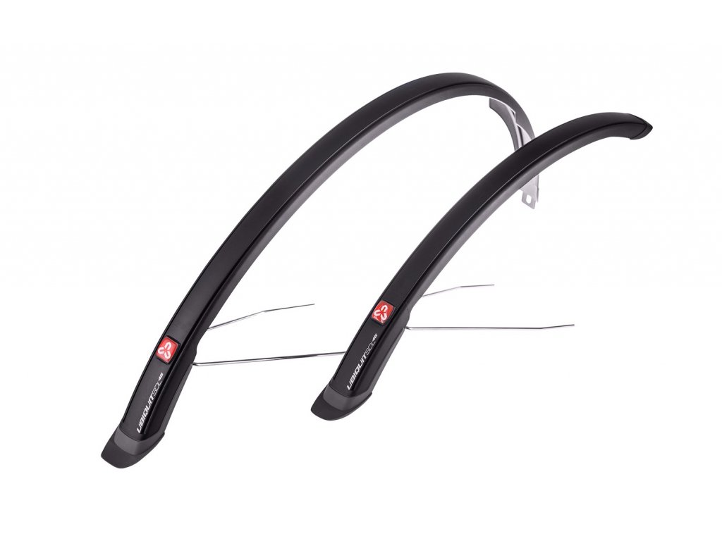 Upevnenie na bicykel vpredu pomocou jednej vzpery a pliešku a vzadu na objímku