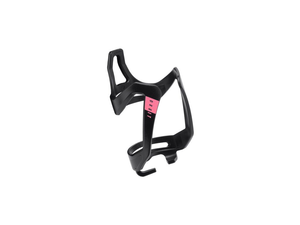 Plastový držák na láhve; otočný v horizontálním směru o 70 stupňů; balení obsahuje šrouby do rámu; hmotnost: 39 g; Barva: černá/rúžová