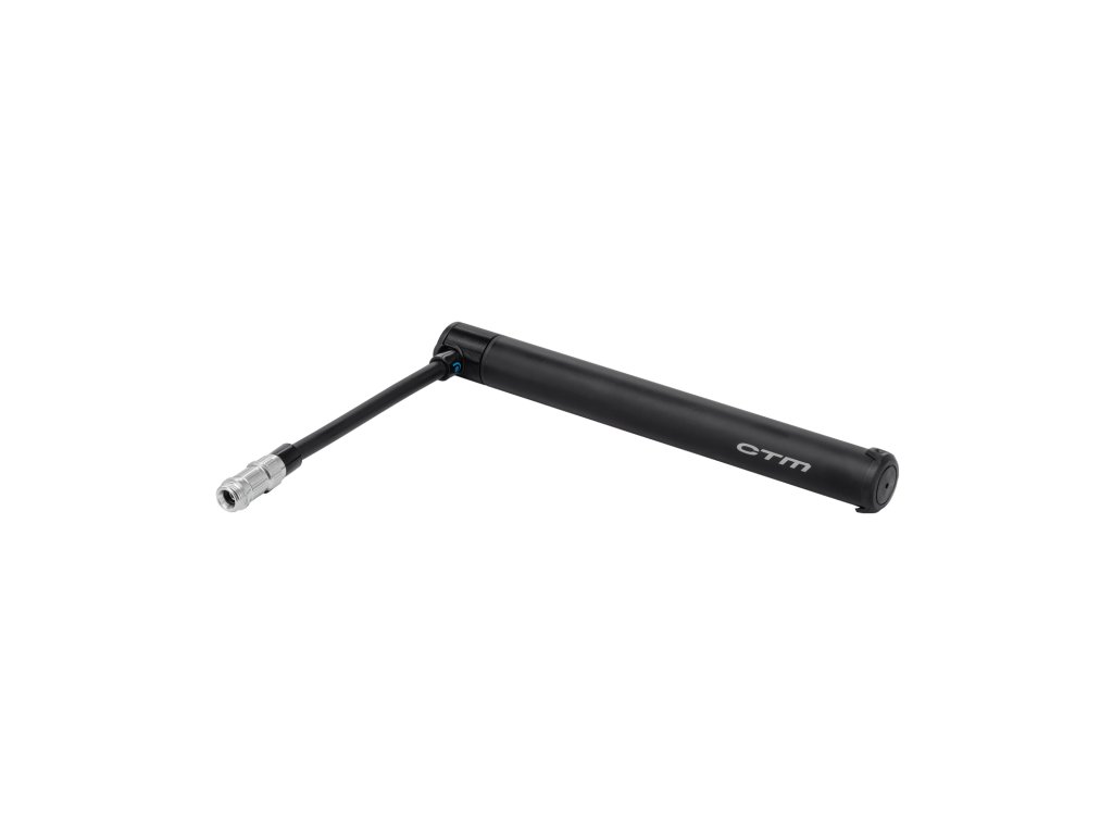 Duralová CNC mini hustilka s výsuvnou hadičkou; Max. tlak: 120PSI; Otočný ventil hlavy hustilky - jednoduché otočenie na závit; Hadička sa po vysunutí zalamuje o 90 stupňov a jednoduchšie sa tak manipuluje pri hustení; Kompaktná veľkosť a nízka váha ideálna pre montáž pod košík na fľašu; Typ ventilu: auto/presta; Súčasťou je držiak hustilky; Dĺžka 19 cm; Farba: čierna