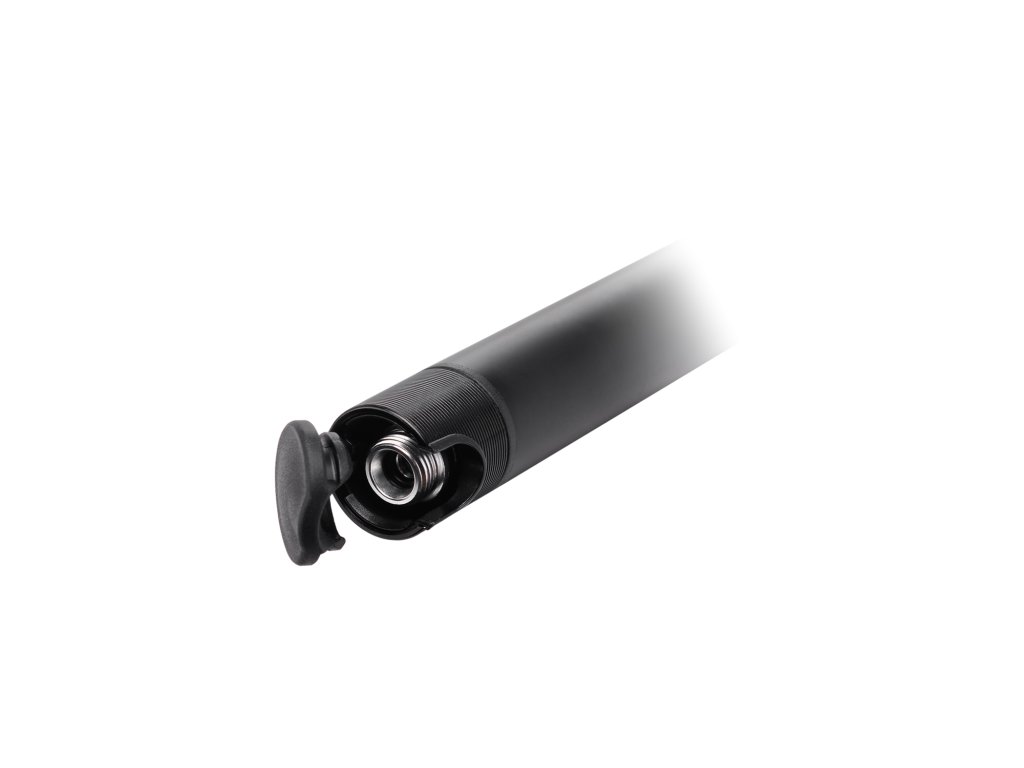 Duralová CNC mini hustilka s výsuvnou hadičkou; Max. tlak: 120PSI; Otočný ventil hlavy hustilky – jednoduché otočení na závit; Hadička se po vysunutí zalamuje o 90 stupňů a jednodušeji se tak manipuluje při hustění; Kompaktní velikost a nízká hmotnost ideální pro montáž pod košík na láhev; Typ ventilu: auto/presta; Součástí je držák hustilky; Délka: 19cm; Barva: černá