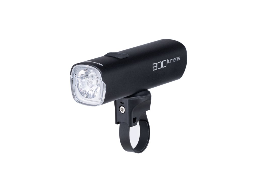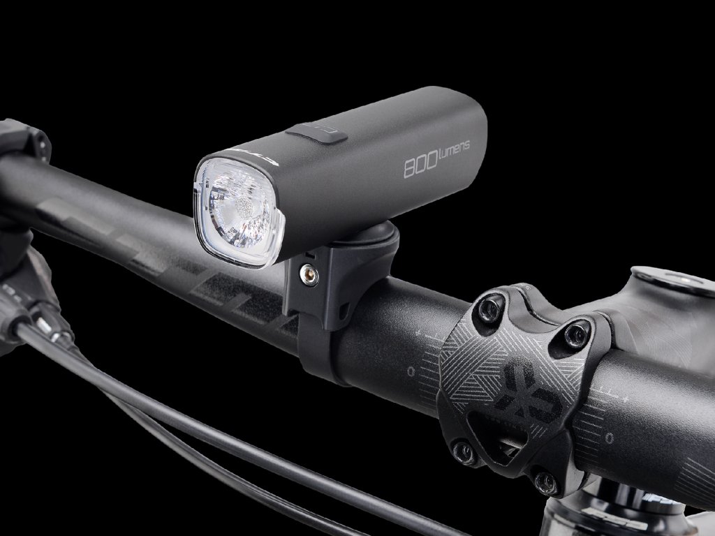 Predné výkonné osvetlenie s možnosťou dobíjania cez USB-C; Svietivosť: 800 lumenov (Luminus SST-40 LED); Powerbank funkcia (5V 2,4A); Ľahká a kompaktná konštrukcia z prémiového hliníku; Dosah svetelného lúča 141m s neoslňujúcim rozptylom; Funkcie: stále svetlo (25%-50%-100%) - blikanie (50%-100%); Výdrž batérie podľa režimu: stále svetlo 25% (7:30h) – 50% (4:00h) – 100% (1:40h) / blikanie 50% (11:00h) – 100% (10:00h); Vodoodolné IPX7 do hĺbky 1m; Batéria 21700 s 3,7V 4000 mAh s indikátorom stavu batérie a dobou dobíjania 2,5 hodiny; Prepínanie medzi režimami dvojklikom vypínača, medzi jasom kliknutím a vypnutie/zapnutie podržaním vypínača; Krátke stlačenie vypínača aktivuje indikátor batérie (ak je svetlo vypnuté); Univerzálne montáže pre rôzne priemery riadidiel (25,4-35mm) s Garmin základňou (kompatibilné); Balenie obsahuje USB-C kábel, základňu na riadidlá s vymeniteľnými popruhmi, Gopro platničku, 3mm kľúč; Rozmer: 107x31x31 mm; Váha: 172g; Farba: čierna