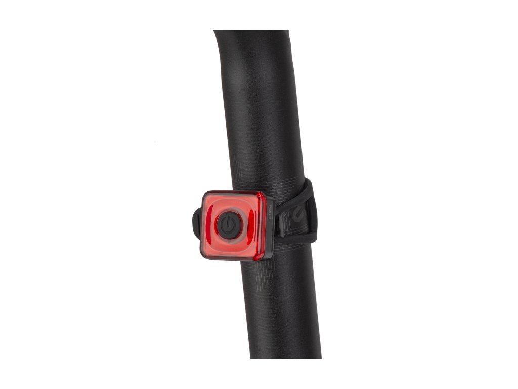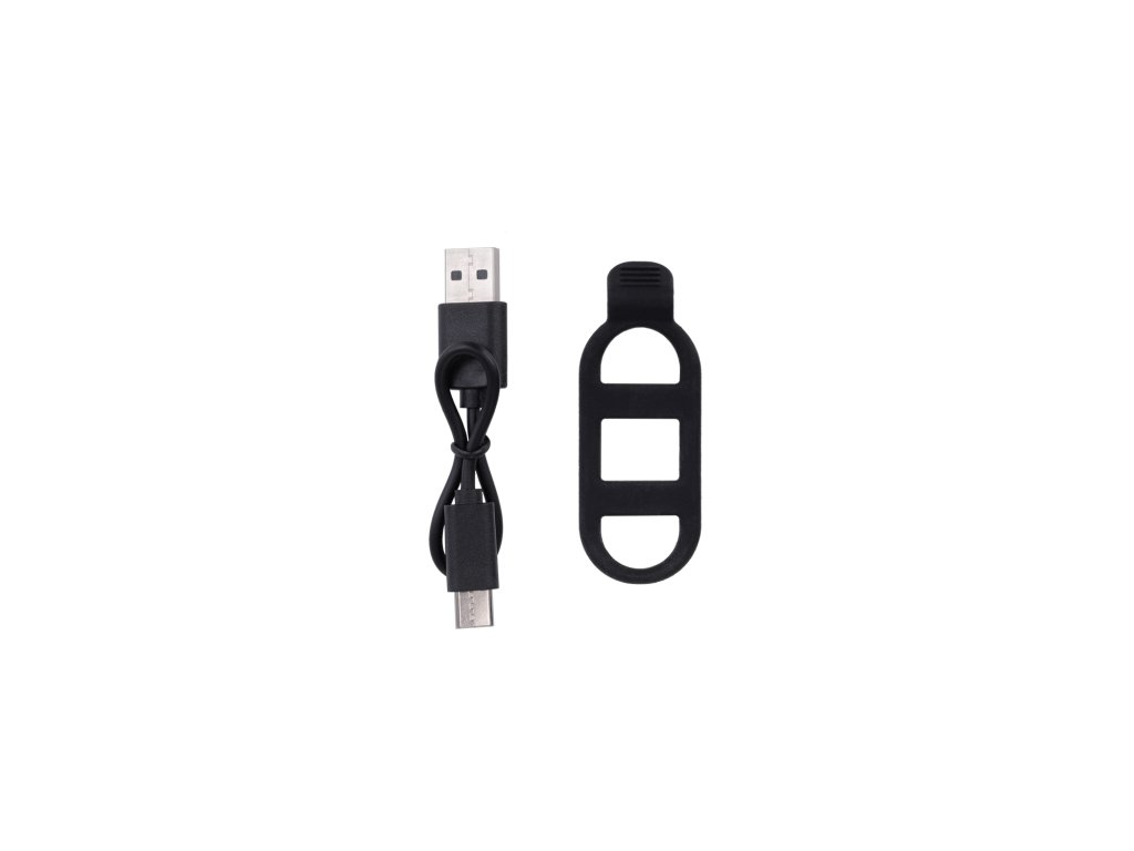 Zadné výkonné mini osvetlenie s možnosťou dobíjania cez USB; Vysokosvietivé COB LED diódy s rozptylom až 180 stupňov; Svietivosť: 20 lumenov; Funkcie: stále svetlo (25%-50%-100%); blikanie (25%-50%-100%); strobo (25%-50%-100%); Výdrž batérie podľa režimu: stále svetlo 25% (7:00h) – 50% (2:40h) – 100% (1:25h) / blikanie 25% (13:05h) - 50% (7:20h) – 100% (5:40h) / strobo 25% (21:40h) - 50% (10:35h) – 100% (6:20h); Vodeodolné IPX5; Lítiová batéria 3,7V 240 mAh s dobou dobíjania 1,5-2 hodiny; Základňa svetla je naklonená pre lepší uhol svietenia pri montáži na sedlovku; Prepínanie medzi režimami dvojklikom vypínača, medzi jasom kliknutím a vypnutie podržaním vypínača; Balenie obsahuje micro-USB kábel; Rýchla montáž na robustný O-krúžok bez náradia; Rozmer: 31x29,5x23 mm; Váha: 17g; Farba: čierna