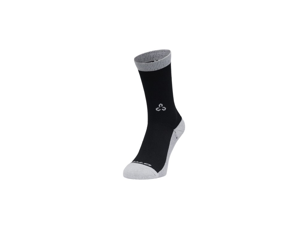 Technické ponožky z polyamidu; Tenké a prodyšné se semi-kompresním střihem; Zesílené v oblasti paty a špičky; Tlakové zóny v oblasti nártu a achilovky, které podporují proudění krve; Výška lýtka 18''; Velikost: 43–46; Materiál: Polyamid 93 %, Bavlna 7 %; Barva: černo-šedá