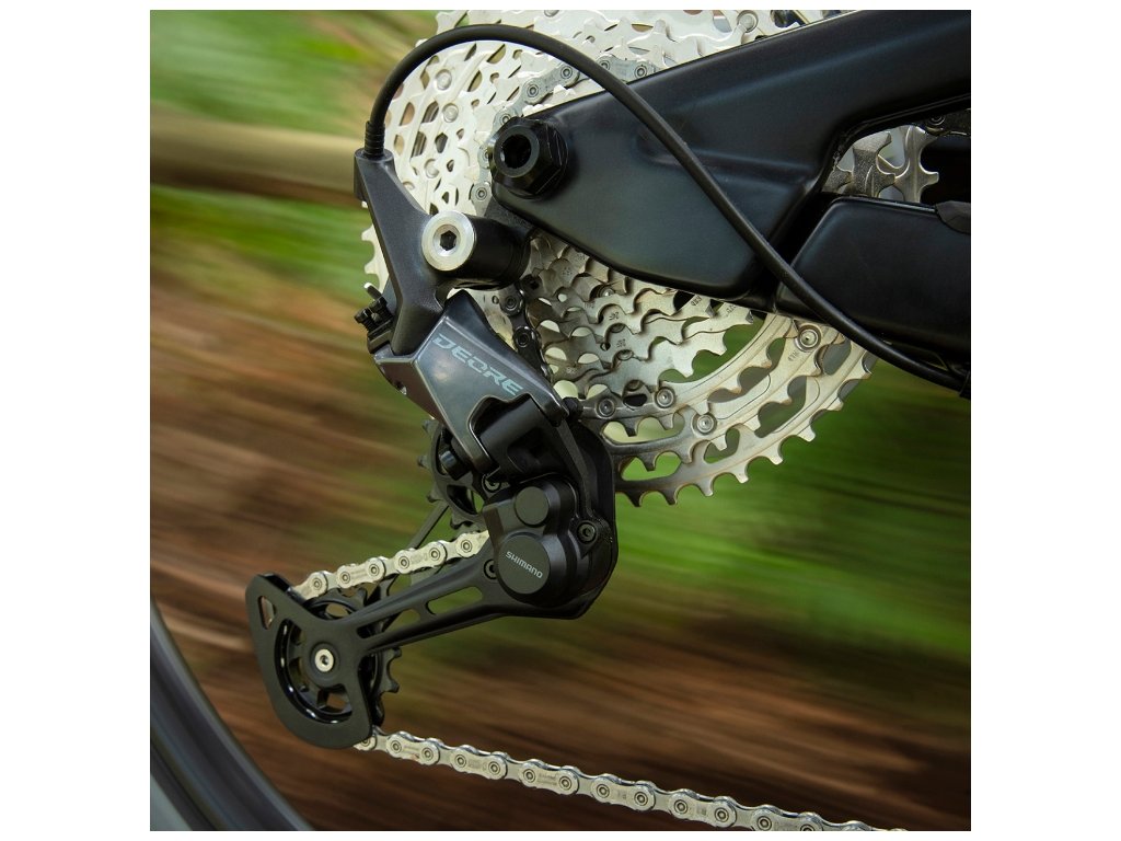 Nízkoprofilový dizajn prehadzovačky Deore M6100 Shadow RD+. Určená pre kombináciu prevodov 1x12 s kazetou s 10-51 zubov. Stabilizátor reťaze znižuje odskakovanie, nárazy a hlučnosť reťaze.