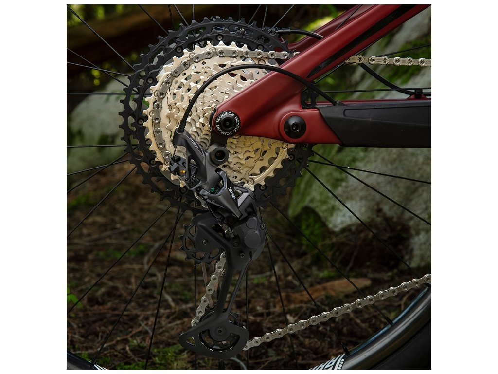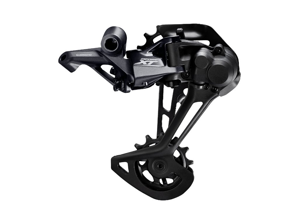 Prehadzovačka DEORE XT M8100 konštrukcie Shadow RD+. Vylepšený radiaci výkon. Nižšia hlučnosť. Väčšie 13 zubové kladky. Nižšie predpätie zadnej prehadzovačky na spodných pastorkoch kazety, aby sa zabránilo nadmernému napnutiu reťaze na týchto prevodových stupňoch. Určená pre kombináciu prevodov 1x12 s kazetou 10-51 zubov.