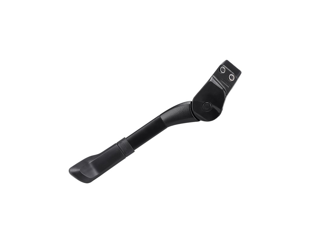 Detský duralový nastaviteľný stojan pre 20"-24"; Tichý sklápací mechanizmus; Uchytenie na vonkajšie návarky zadnej stavby bicykla (rozteč dier 18mm, skrutka M6); Kompaktné a odolné prevedenie ponúka zároveň vysokú stabilitu; Maximálne zaťaženie: 35kg; Pre detské bicykle CTM Jerry, Rocky 1.0-5.0; Farba: matná čierna