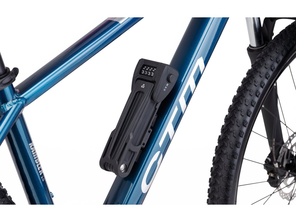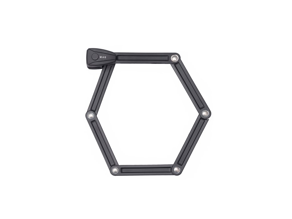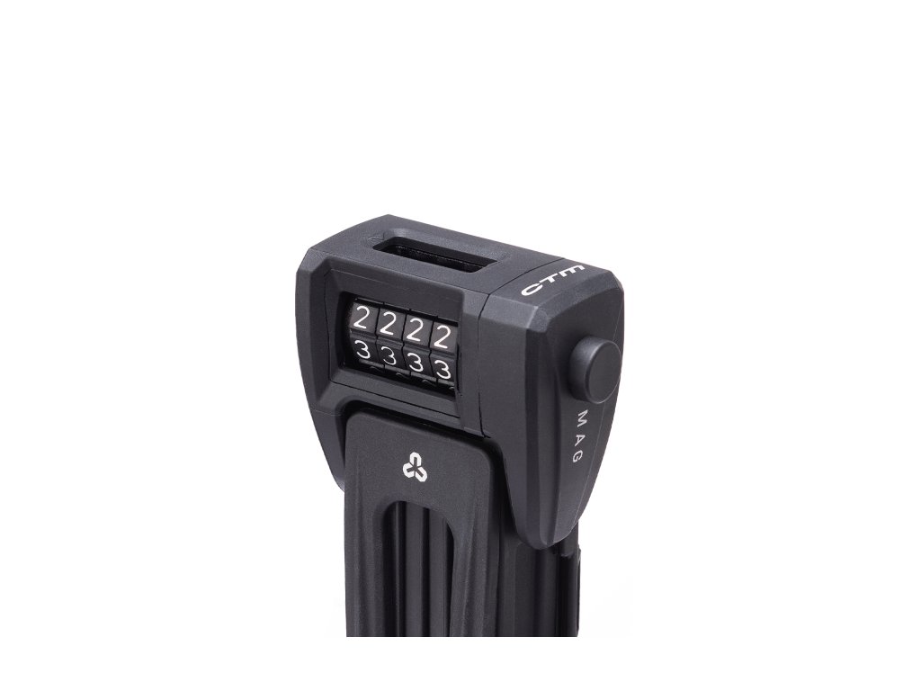 Skládací ultralehký zámek na kód; Tvrzené ocelové články o tloušťce 3,5 mm s vylepšenou ochranou proti přeříznutí a přetížení; Odolný vůči nízkým teplotám a korozi; Matná plastová povrchová úprava hlavy a článků; Držák zámku lze namontovat přímo na rám pomocí šroubů nebo stahovacích pásků; Snadné vyjmutí zámku z držáku díky bezpopruhovému designu – zámek stačí vytáhnout/vložit a pevně drží na místě (lze vyjímat i do stran); Na zadní straně držáku je skryté místo pro vložení GPS lokátoru (není součástí balení); Úroveň ochrany: 4; Rozměr: 900 mm; Barva: černá