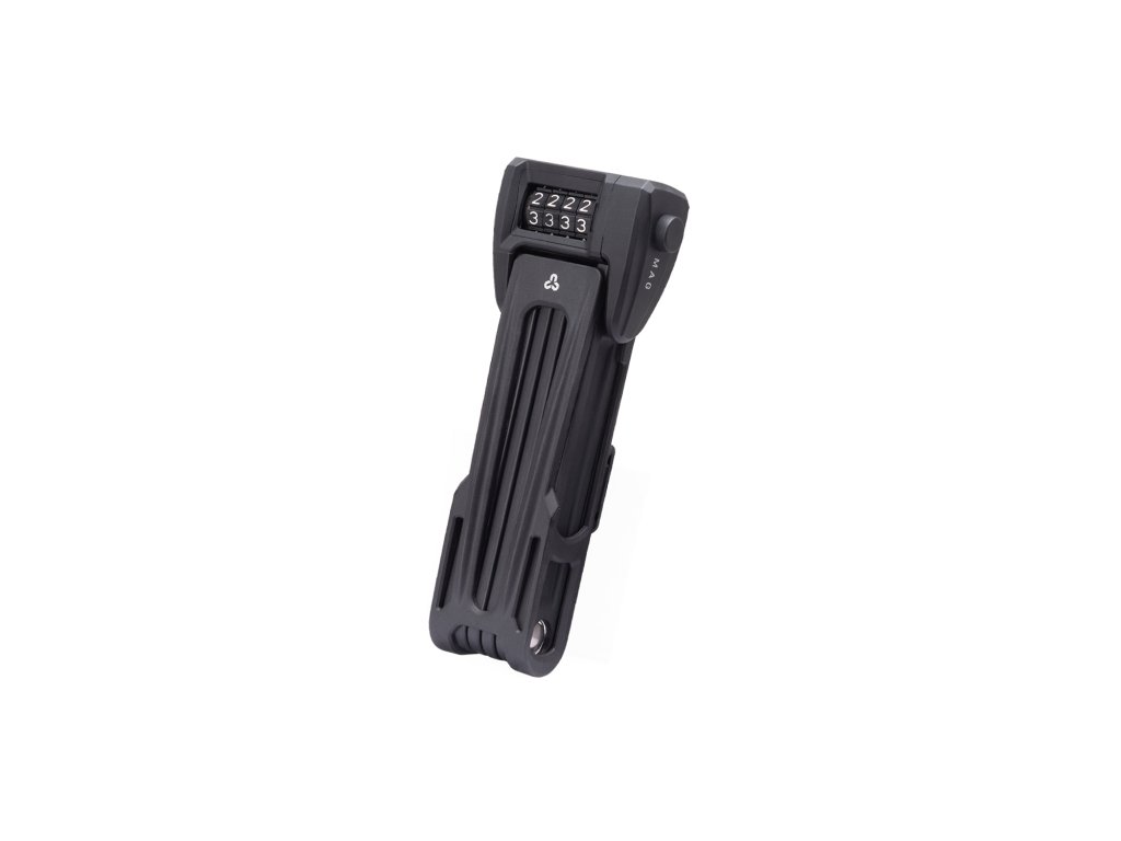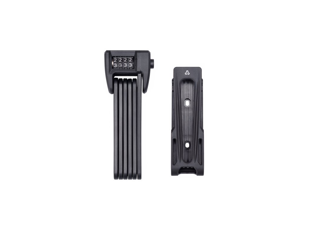Skladací ultraľahký zámok na kód; Tvrdené oceľové články s hrúbkou 3,5mm s vylepšenou úpravou proti prerezaniu a preťažení; Odolné voči nízkym teplotám a korózií ; Plastová matná povrchová úprava hlavy a článkov; Držiak zámku možné namontovať priamo na rám pomocou skrutiek alebo pomocou sťahovacích remienkov; Jednoduché vyberanie zámku z držiaku vďaka bez-popruhovému dizajnu – zámok stačí vytiahnuť/vložiť a pevne drží na mieste (možné vyberať aj do strán); Na zadnej strane držiaku sa nachádza skryté miesto pre vloženie GPS lokátora (nie je súčasťou); Úroveň ochrany: 4; Rozmer: 900mm; Fabra: čierna